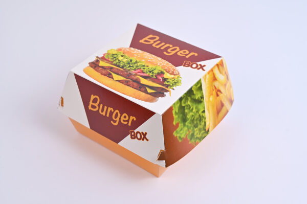 Kartonska kutija za hamburger, univerzalna štampa, 13 x 13 x 10 cm (visina) sa poklopcem.
