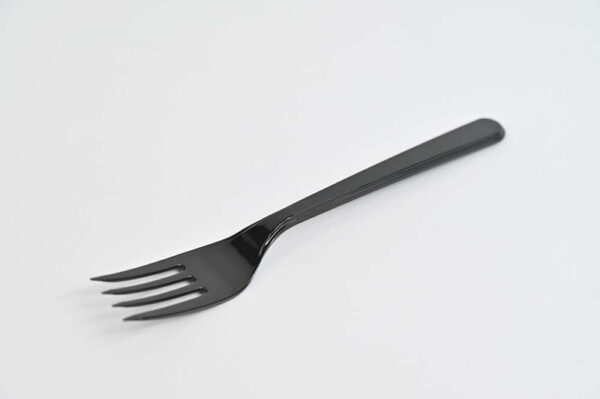 Crna plastična viljuška. Upotreba: restorani, slastičarne, catering, fast food.